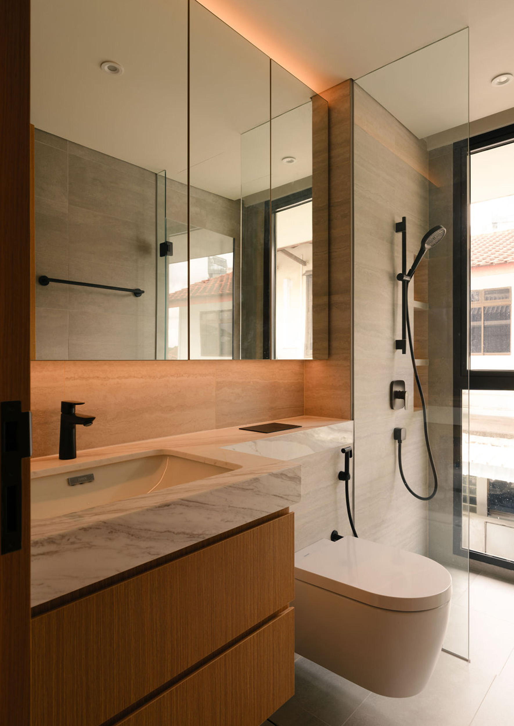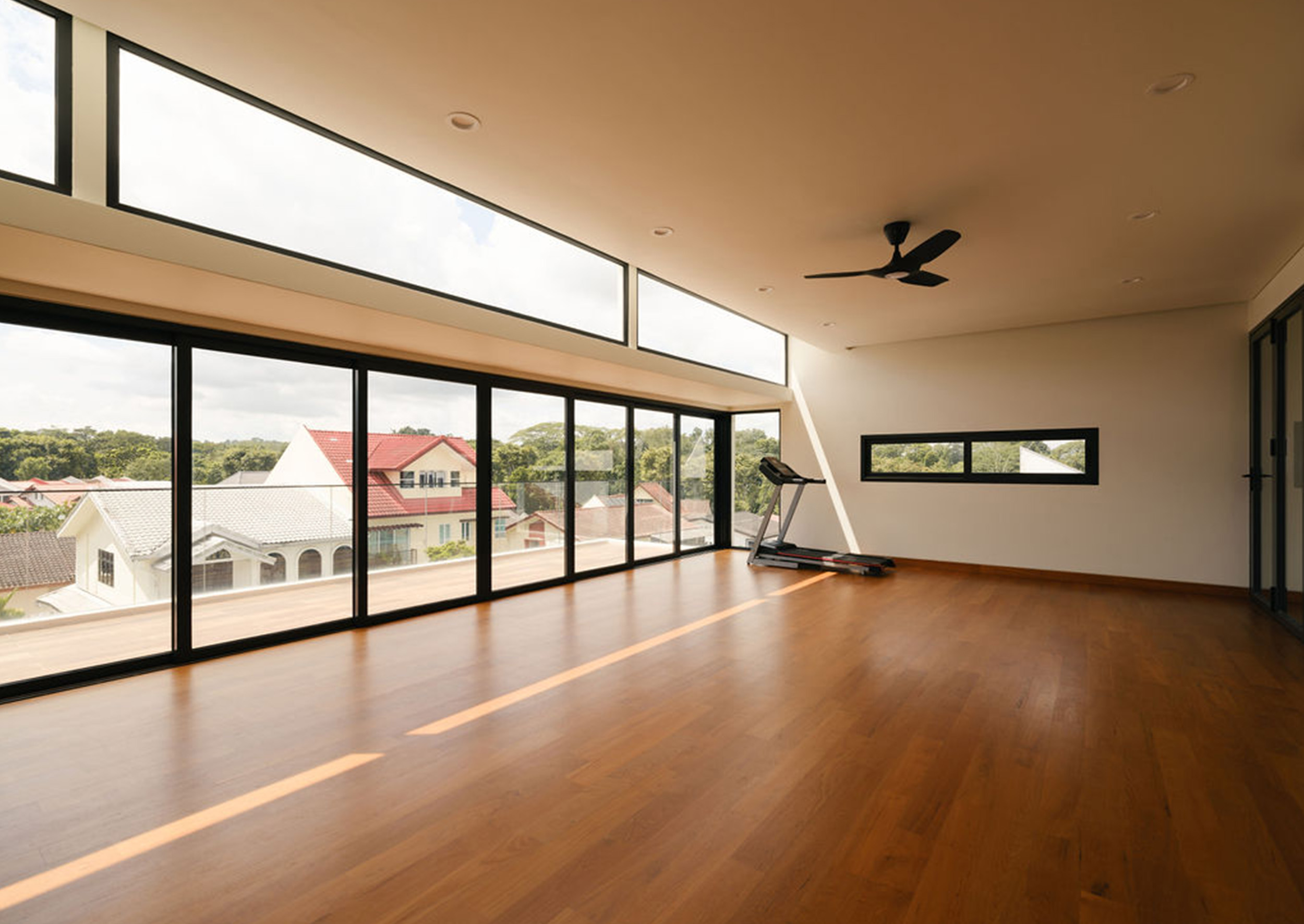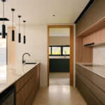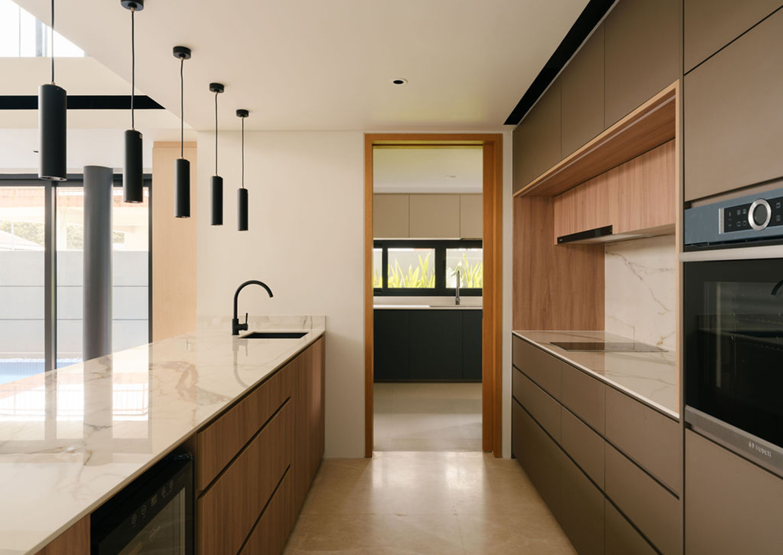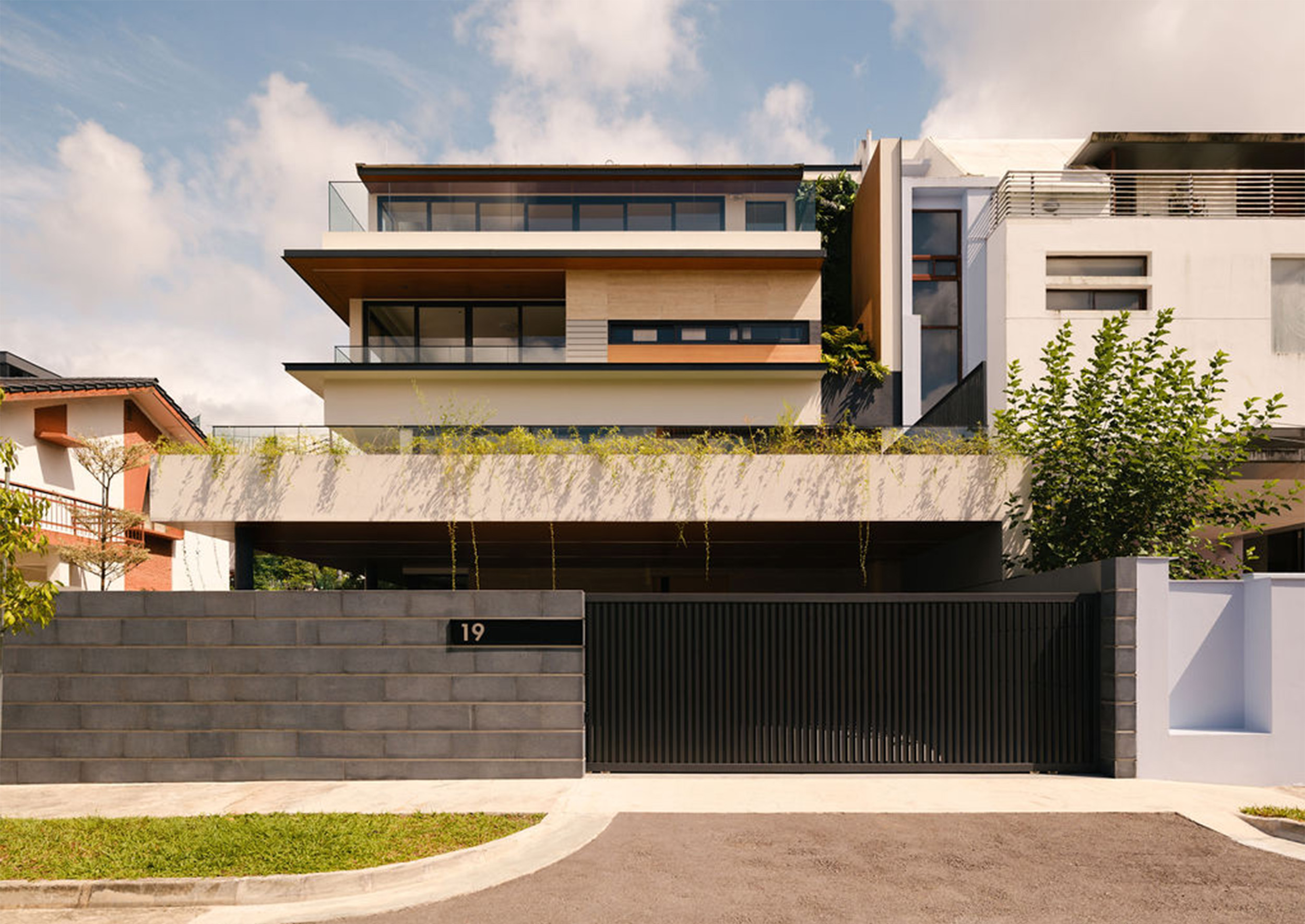 This fluid connection between indoors and out enhances cross-ventilation and bathes the interior in natural light, typical of a tropical-modern home concealed discretely behind the social spaces lies the function wet kitchen, catered for Asian cooking, along with a maid’s room and bathroom tucked away for privacy. A feature wall hides the household shelter and blends seamlessly with lift panels.